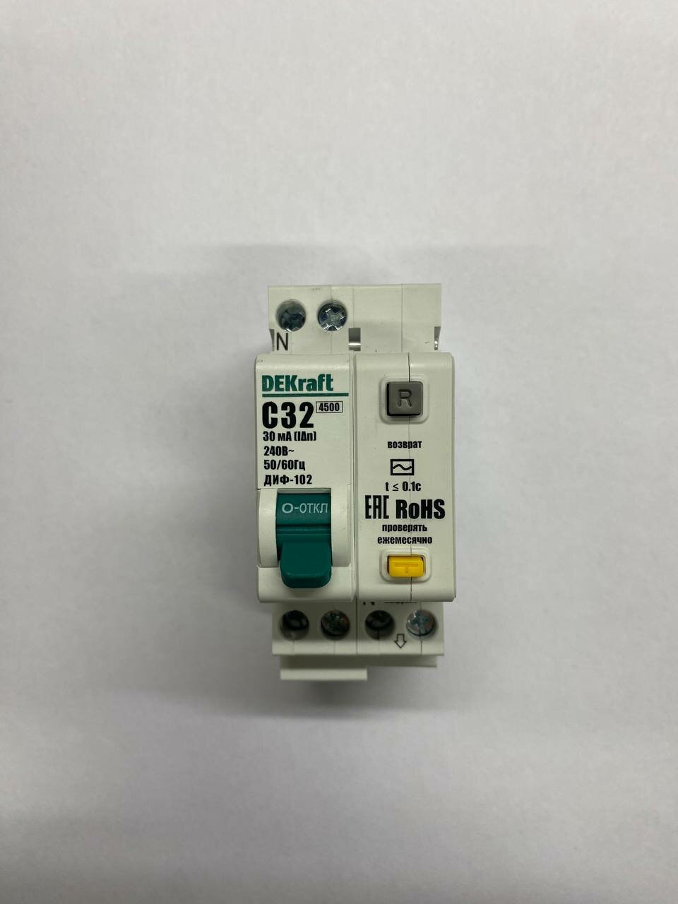 16006DEK Дифференциальный автоматический выключатель DEKraft ДИФ-102 1П+N 32А 30мА, тип AC, 4.5кА, C