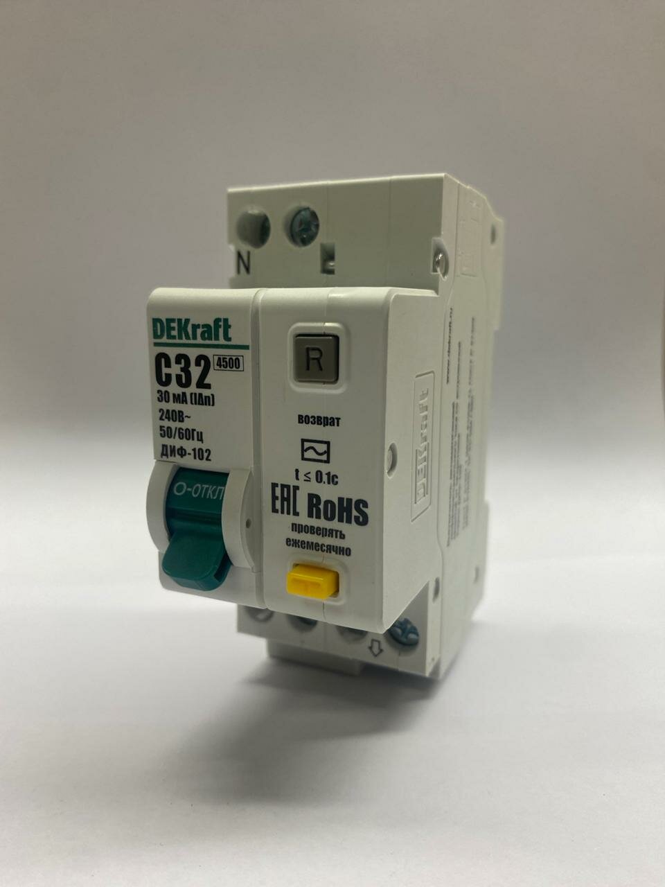 Купить ДИФ-102 дифференциальный автоматический выключатель 1P+N, 32А, 30mA, тип AC, 4,5kA, (хар-ка C) DEKraft, 16006DEK