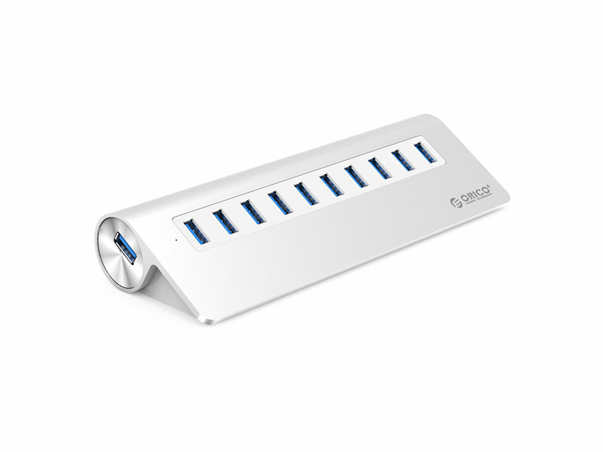 Купить USB-концентратор ORICO M3H10, разъемов: 10, серебристый