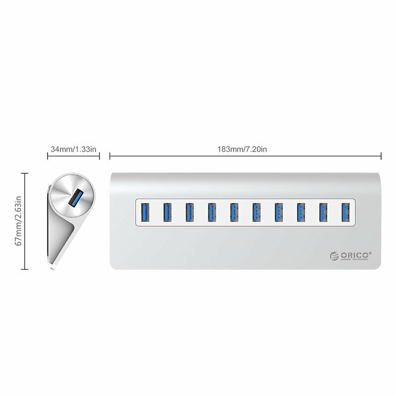 USB-концентратор на 10xUSB-A 3.0 портов Orico M3H10, серебристый [ORICO-M3H10-SV]