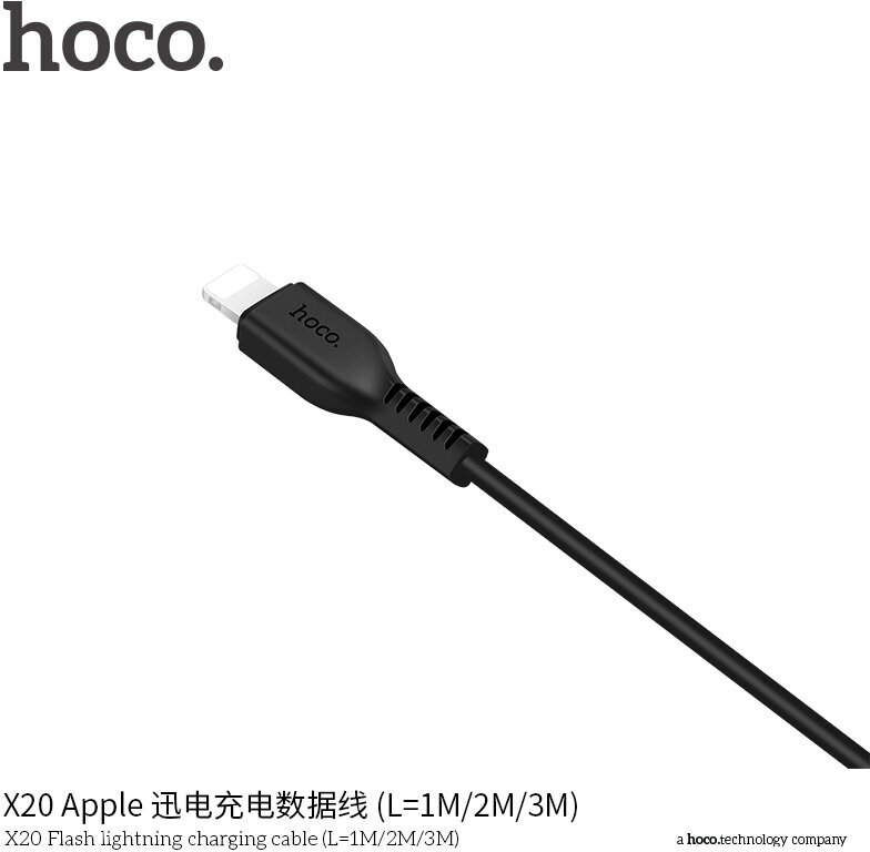 Кабель Hoco X20, Lightning - USB, 2 А, 3 м, PVC оплетка, чёрный