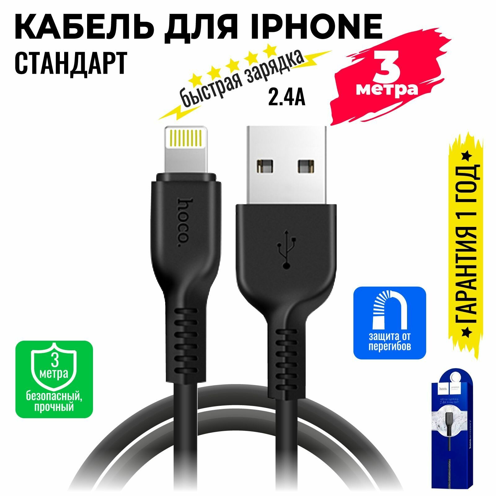 Кабель для iPhone, быстрая зарядка, 3 метра, передача данных / USB провод для iPad airPods / шнур для разъема Lightning / Hoco. X20