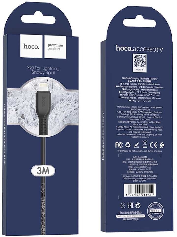 Купить Кабель Hoco X20 Flash USB - Lightning, 3 м, черный