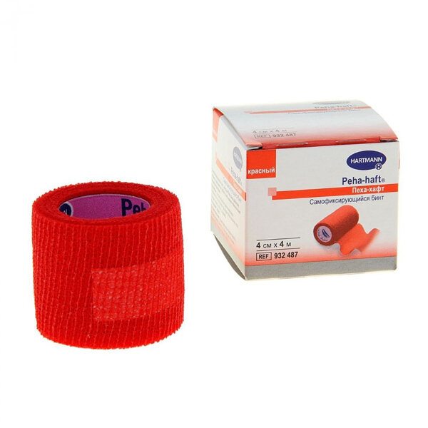 Hartmann бинт самофиксирующийся Peha-haft красный, 4м х 4 см, 1 шт.