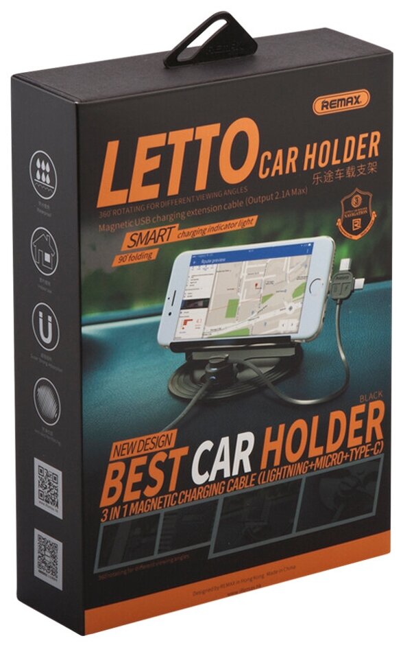 Автомобильный универсальный держатель подставка с кабелем для зарядки телефона смартфона Remax RC-FC2 интересное: