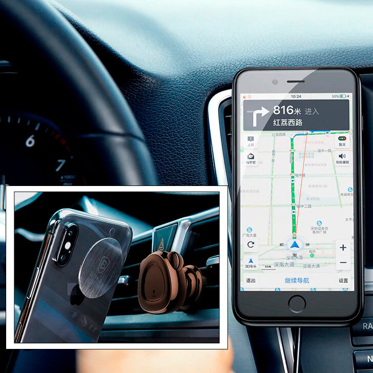 Автодержатель универсальный Baseus, C01 Magnetic Phone Holder в воздуховод, SUCC000101 черный