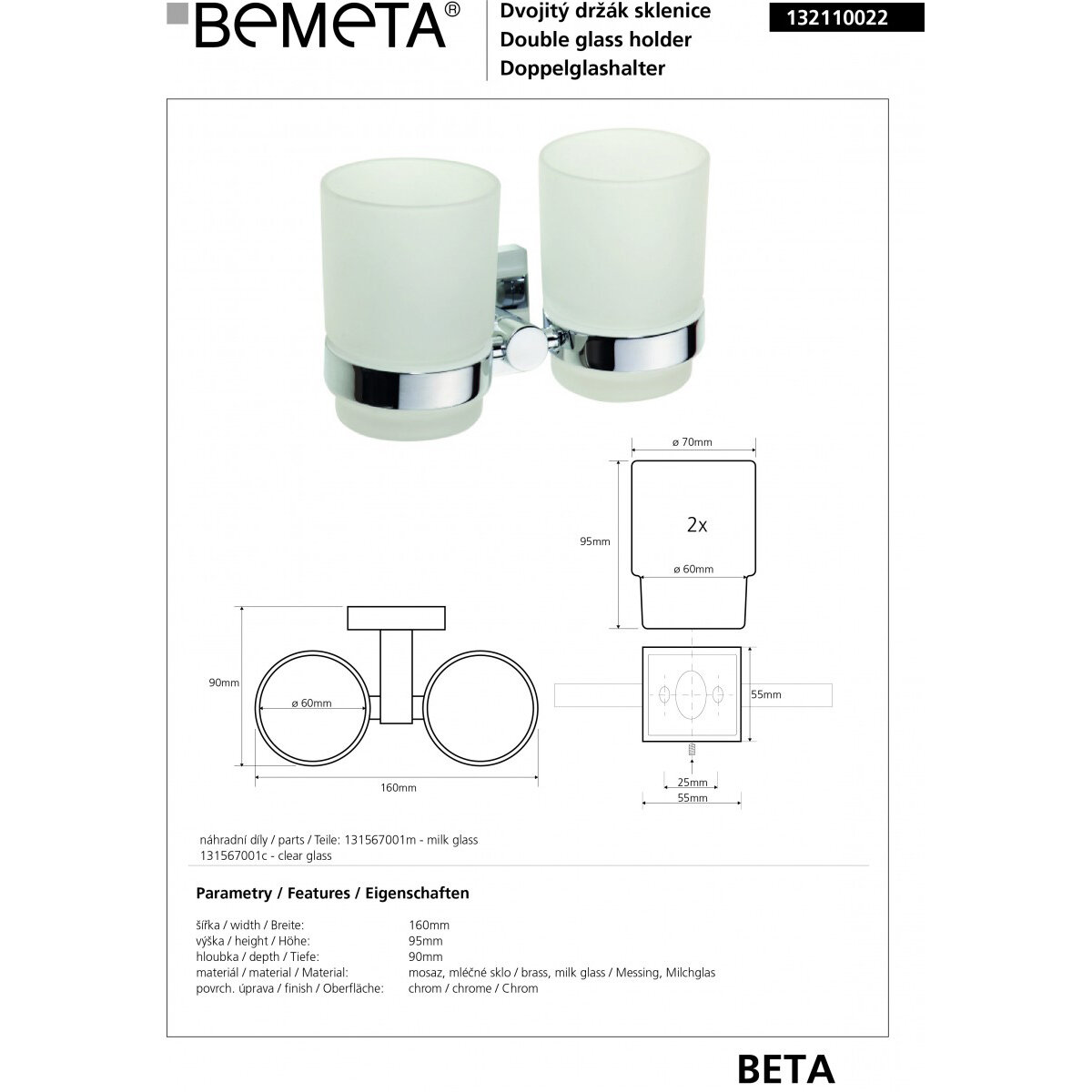 BEMETA Стакан двойной Bemeta Beta 132110022