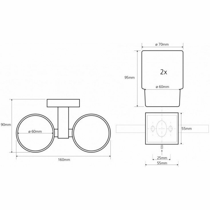 Стаканчики Bemeta Beta настенные, 95х160мм, стекло, хром 132110022