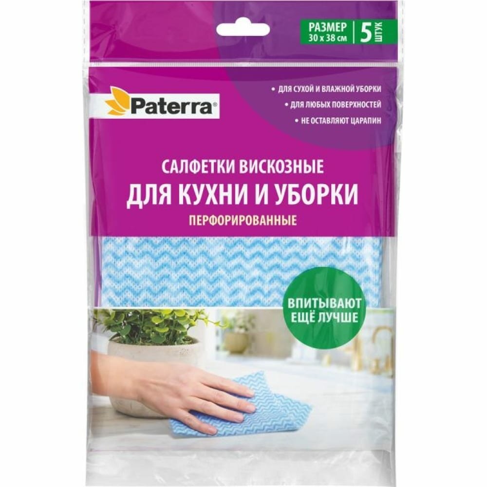 Купить Салфетки вискозные перфорированные для уборки 5 шт. в уп. 30*38 см PATERRA