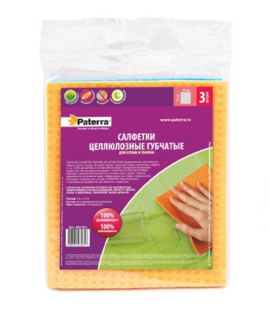 Купить Салфетки целлюлозные губчатые, 3шт. в упаковке, 17*15см, PATERRA