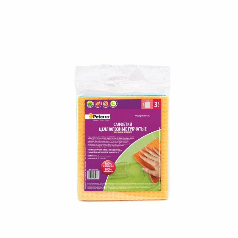 Салфетки целлюлозные губчатые, 3шт. в упаковке, 17*15см, PATERRA (402-511)