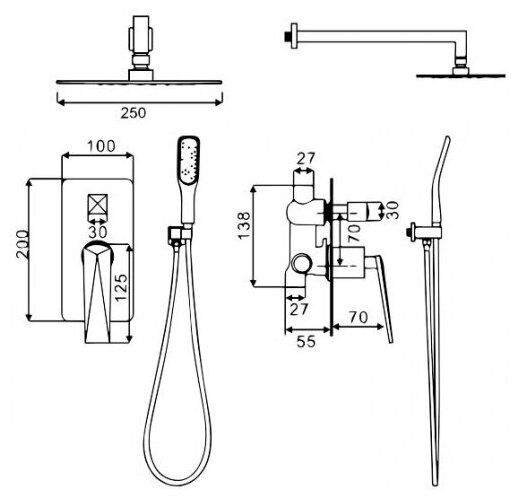Душевой комплект 250 мм Boheme Venturo 384-B