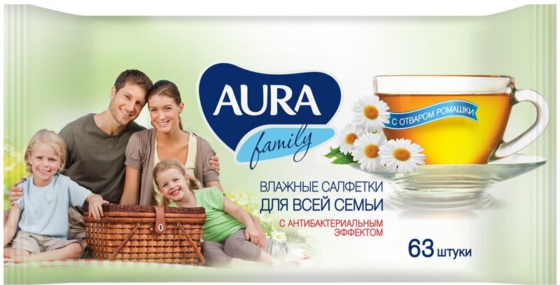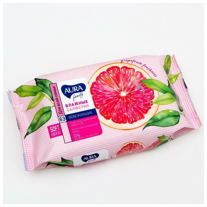 Влажные салфетки Aura Family освежающие, 63 шт. интересное: