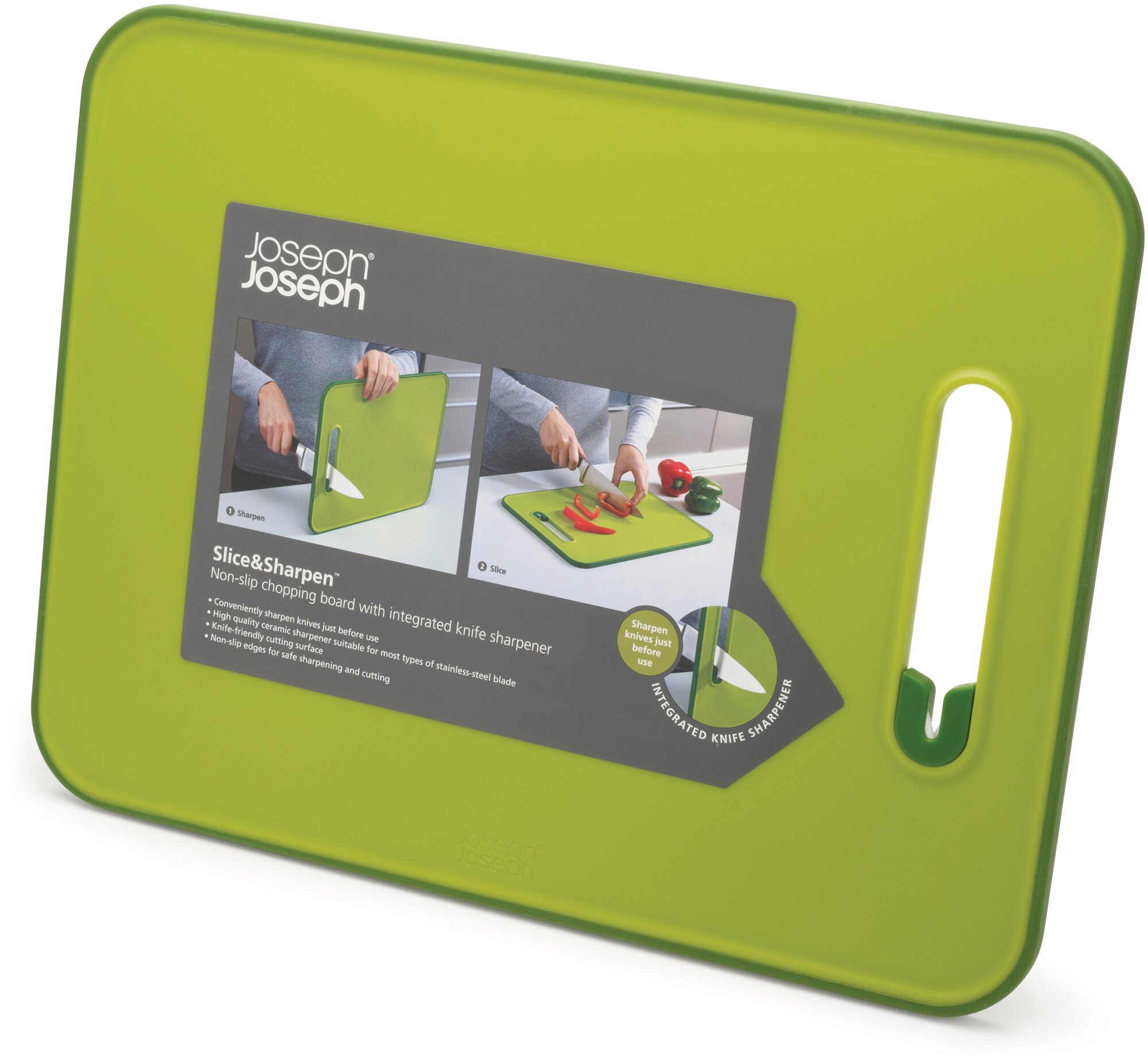 Доска разделочная с ножеточкой JOSEPH JOSEPH Slice & Sharpen большая, зеленая