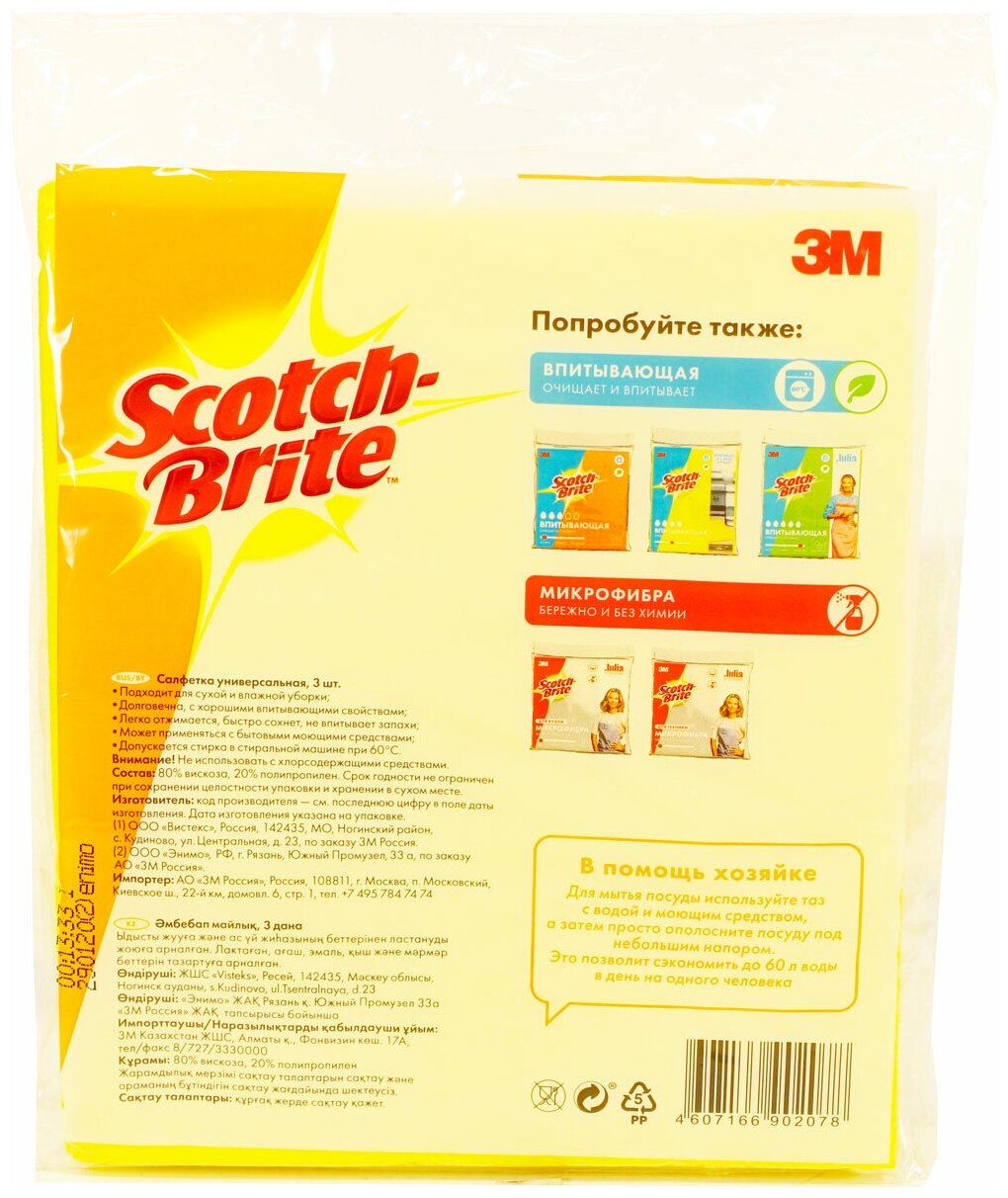 Набор универсальных салфеток Scotch-Brite "Оптима", желтый, 3 шт. интересное: