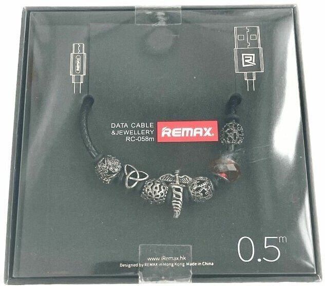 USB кабель Remax RC-058m Jewellery MicroUSB, подвеска, 0.5м, TPE, черный
