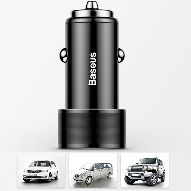 Автомобильное зарядное устройство Baseus Small Screw 3.4A Dual-USB Type-C Car Charging Set TZXLD-B01, черный