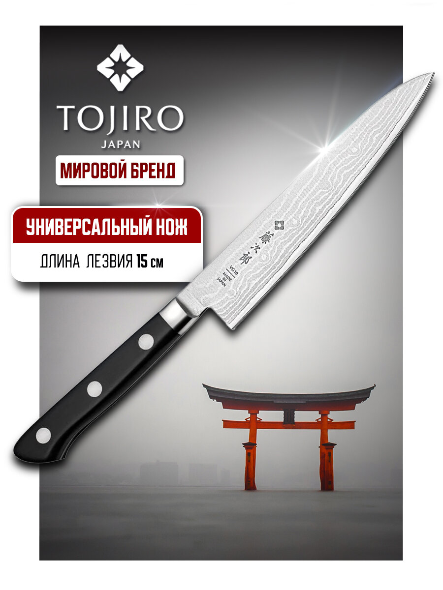 Нож Кухонный Универсальный TOJIRO (F-650), длина лезвия 12 см, сталь VG10, рукоять Eco-wood, заточка #10000