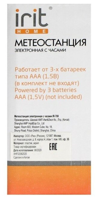 Irit IR-708 Метеостанция электронная с часами .