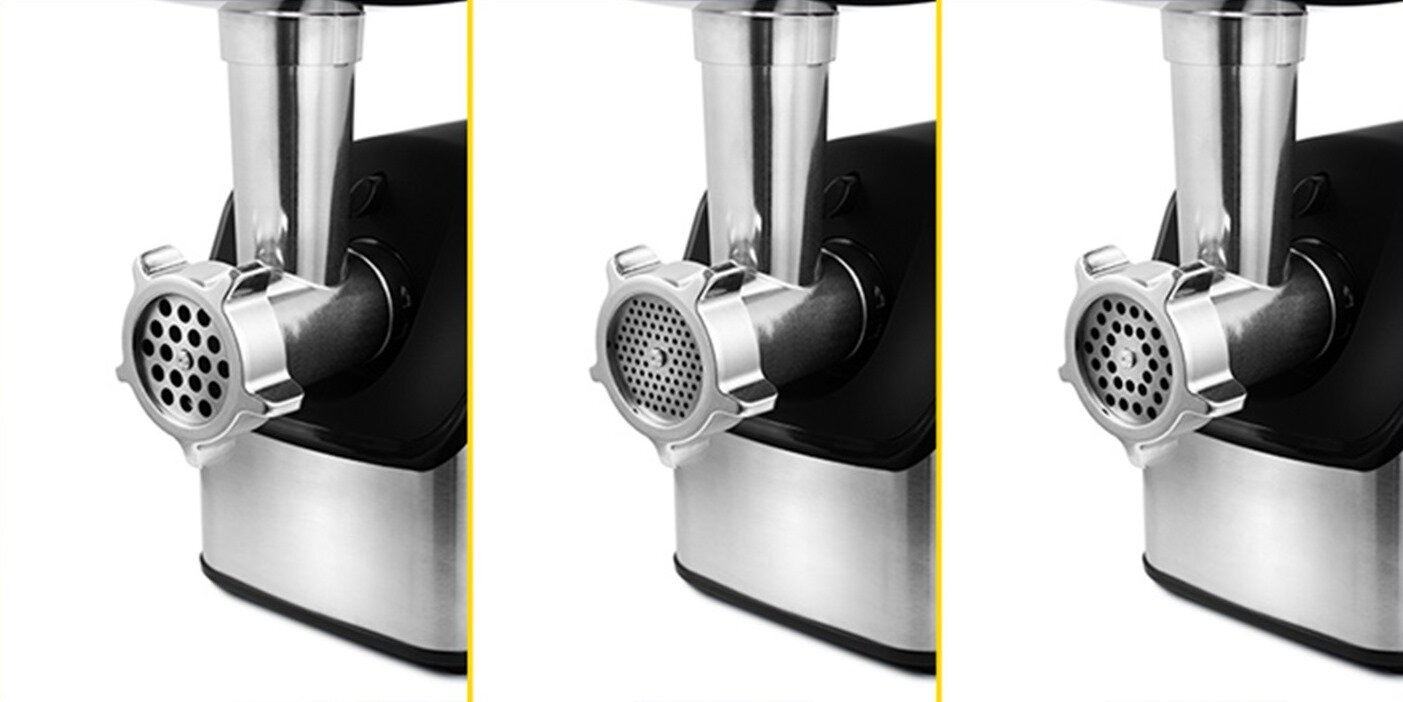 | Плюсы: | Есть 3 сменных пластины для пропуска фарша