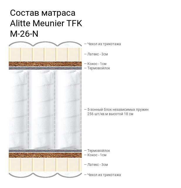 Матрас Alitte Meunier TFK M-26-N, Размер 135х215 см