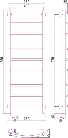 Полотенцесушитель электрический Сунержа, РЭБ “галант 2.0“ 1200х400 / МЭМ левый (Без покрытия)
