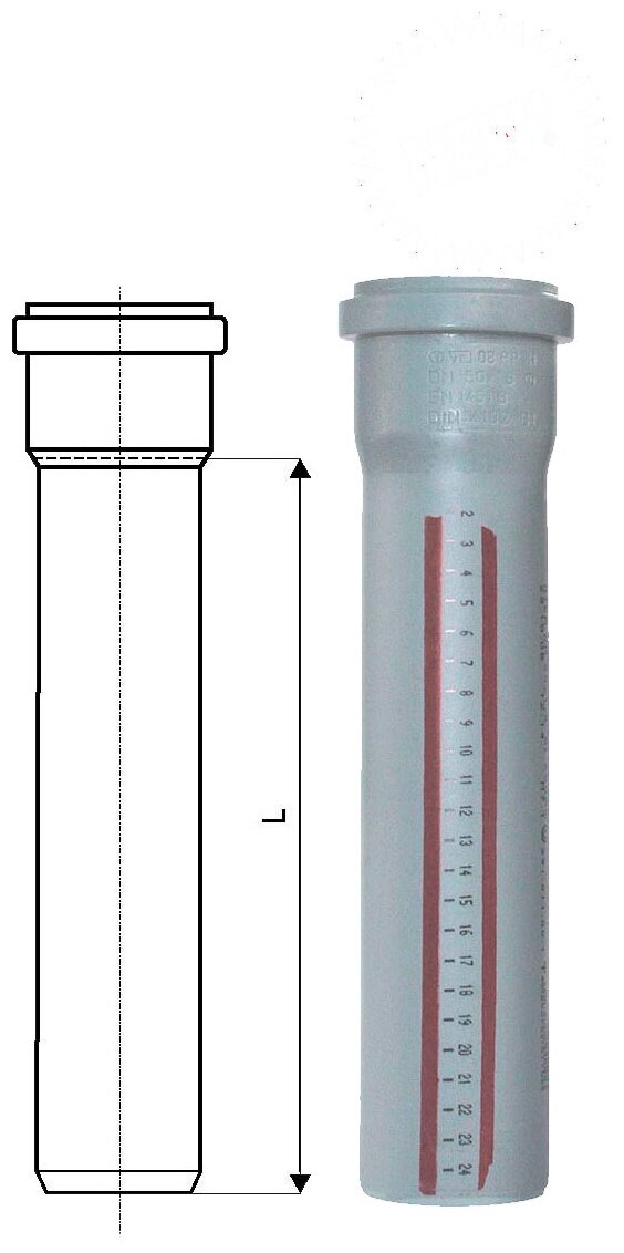 Труба канализационная BASE 50 х 250мм. / серая для внутренней канализации/толщина стенки 1,8мм VALFEX
