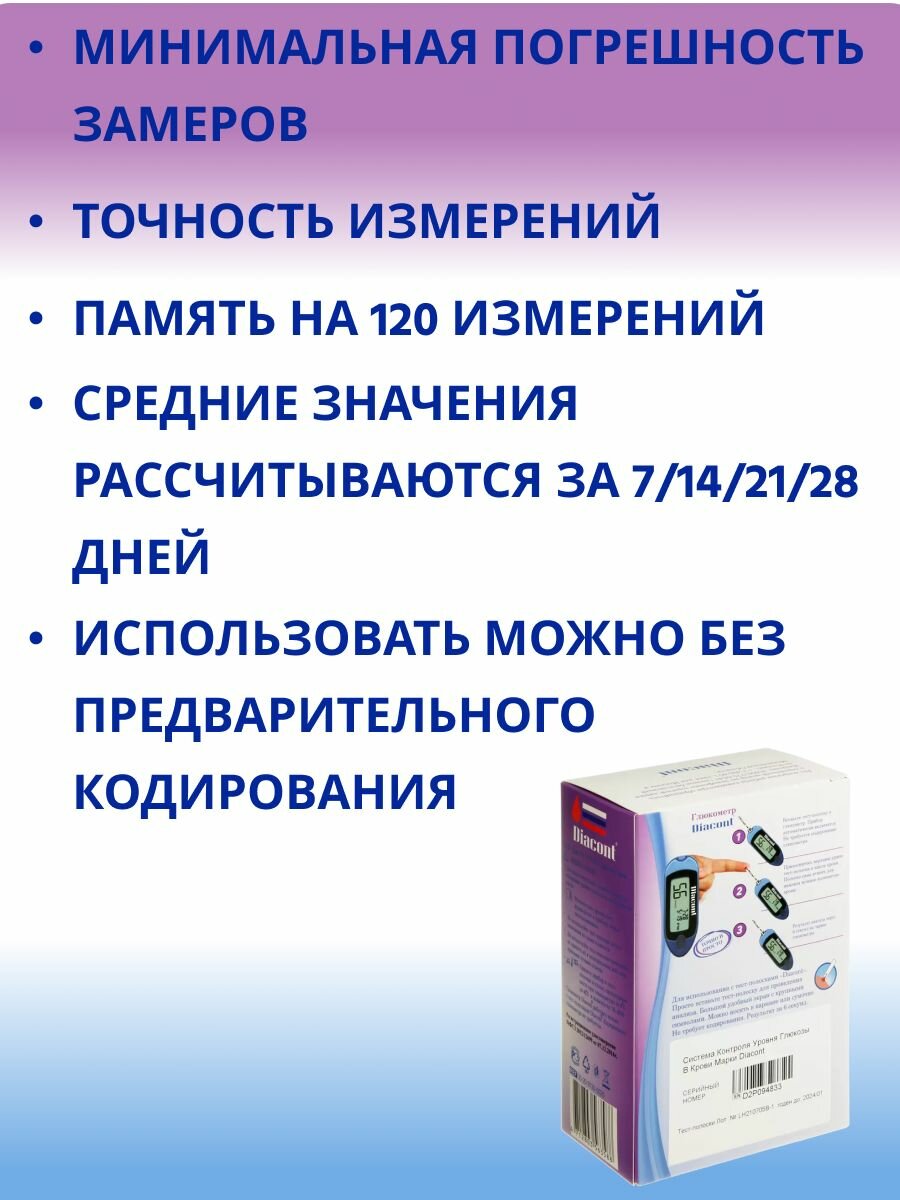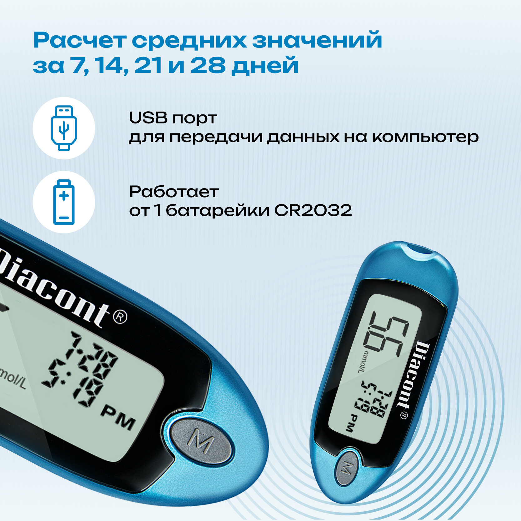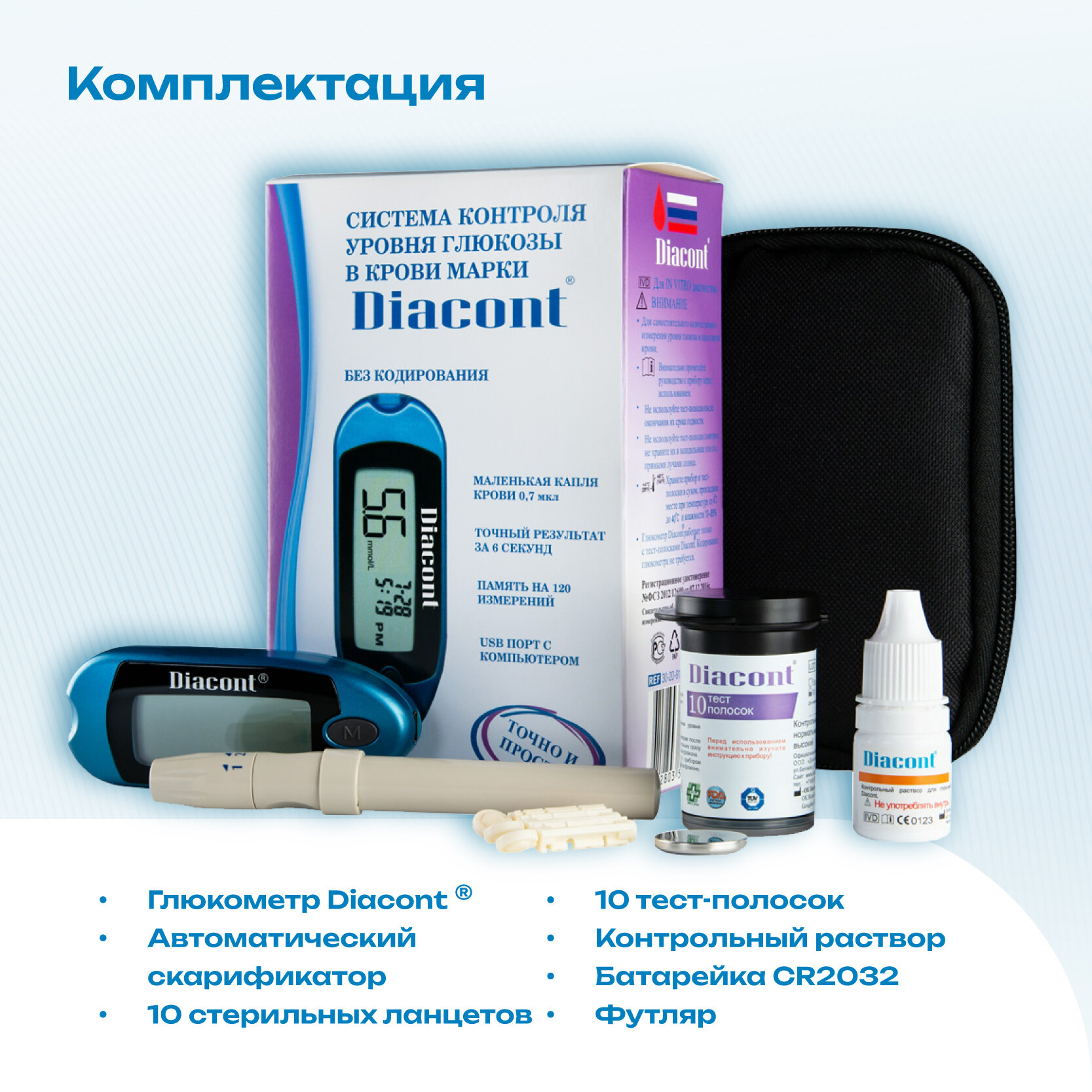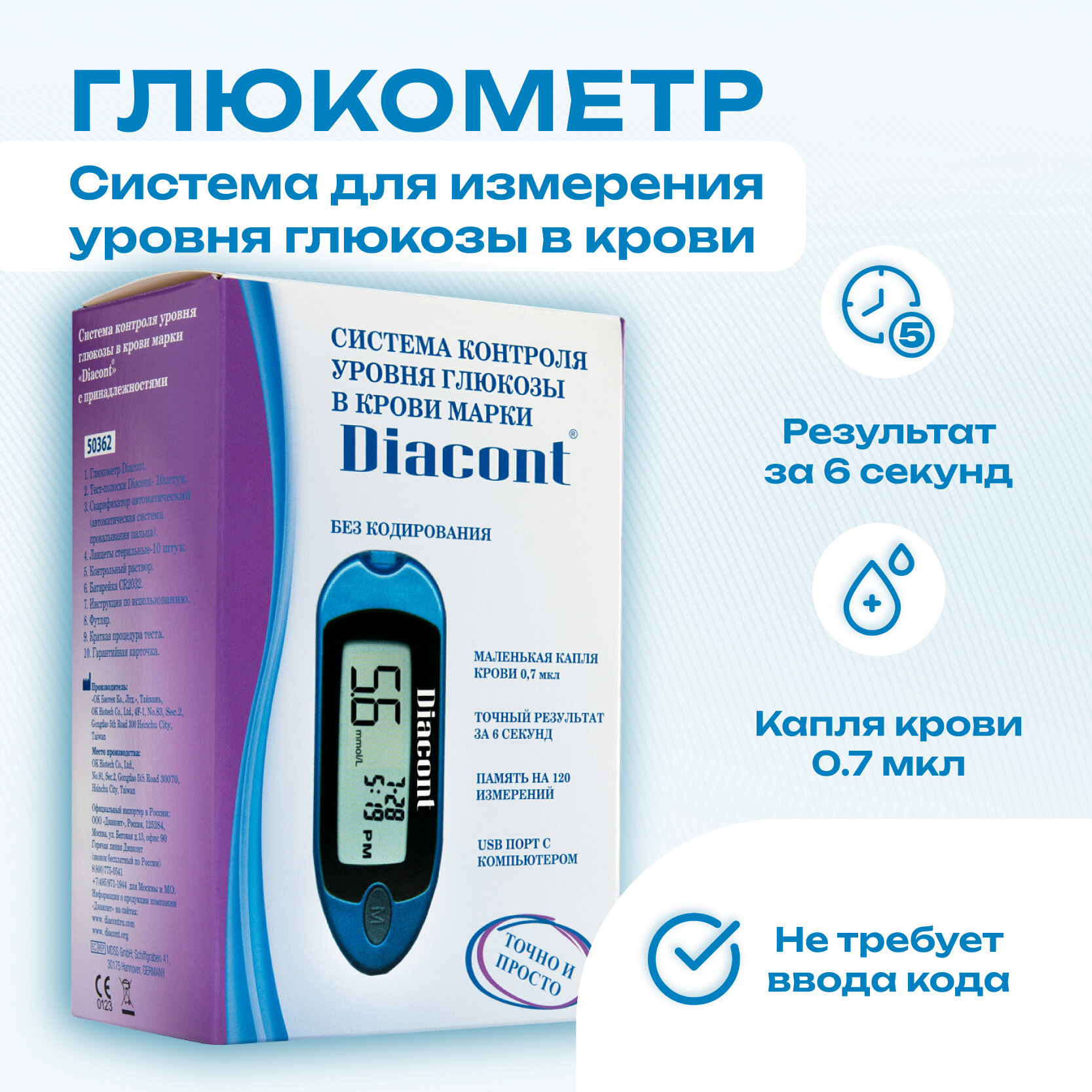 Глюкометр Система контроля уровня глюкозы в крови Diacont 2598, 1594404