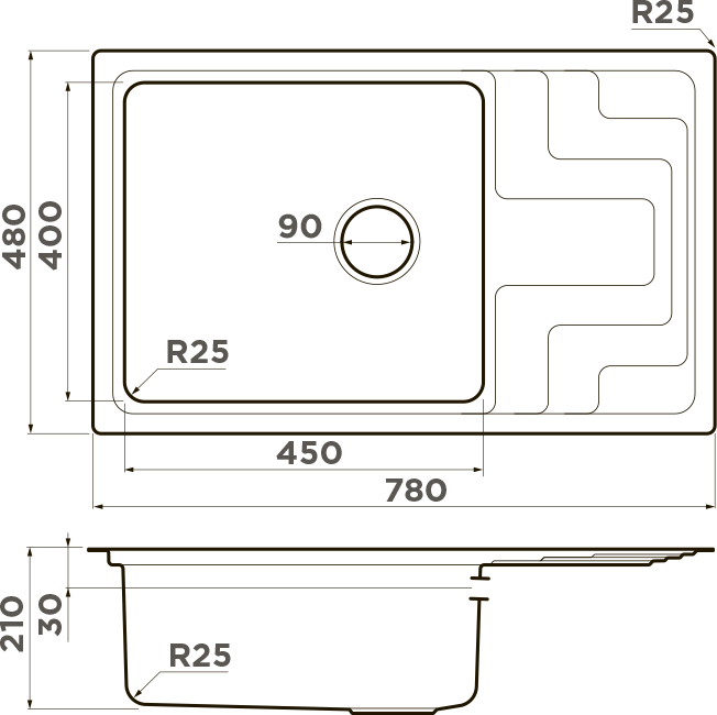 Врезная кухонная мойка ZorG ZL R 440440 BRONZE