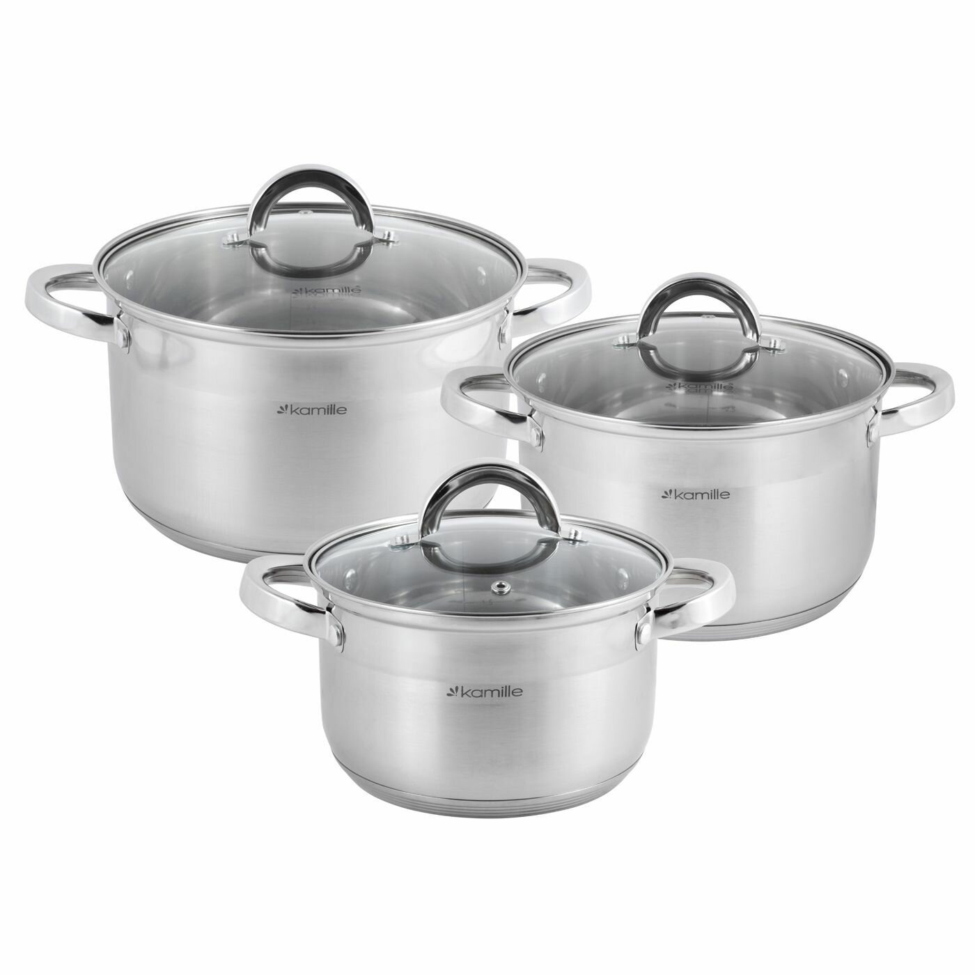 Набор кастрюль 6 предметов Kamille KM-5630S (4,5 л; 5,8 л; 7,8 л) из нержавеющей стали (5630S / серебристый)