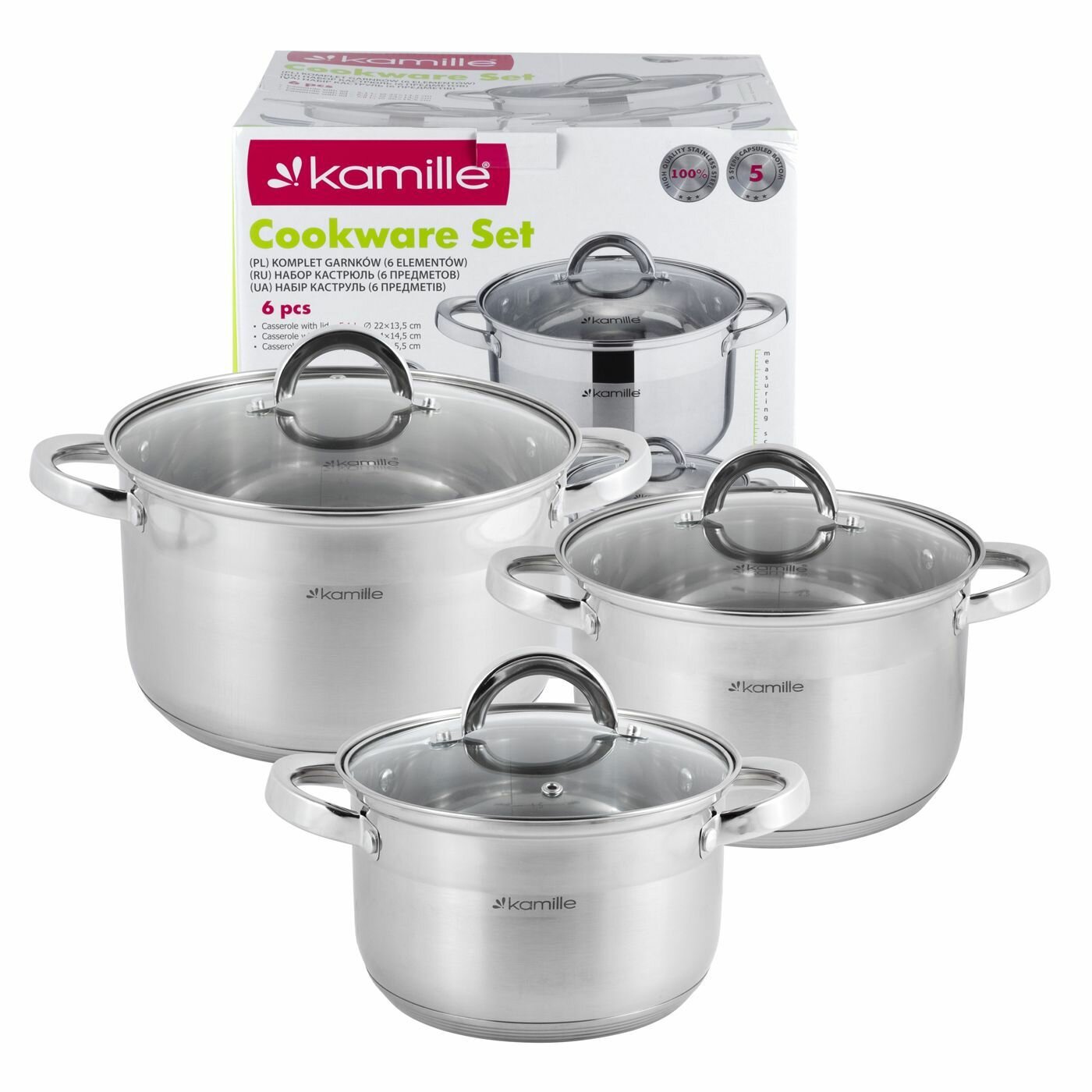 Набор кастрюль 6 предметов из нержавеющей стали KAMILLE KM5630S