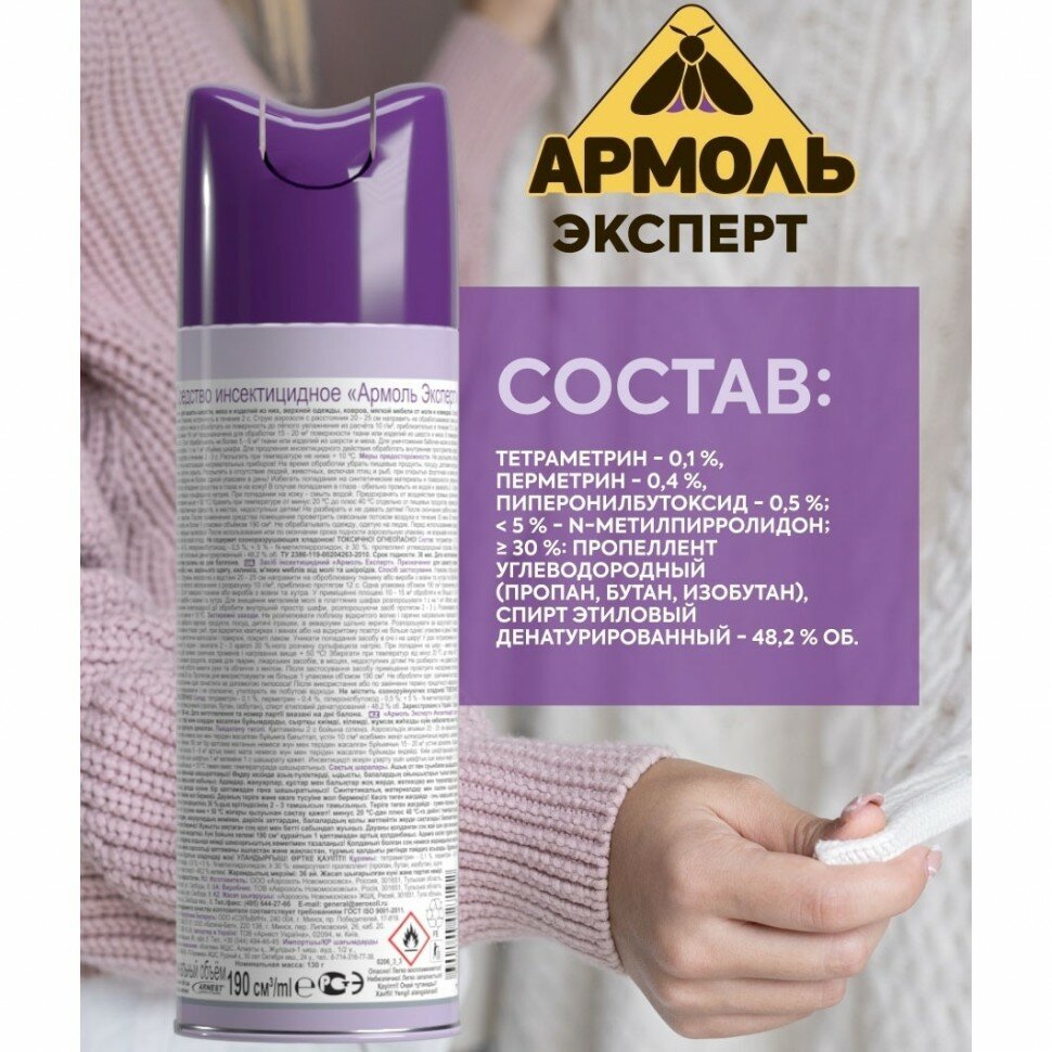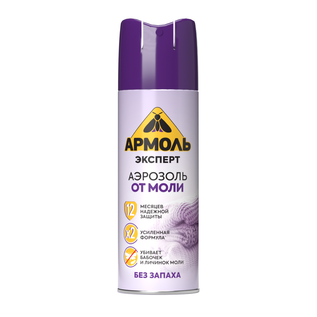 Аэрозоль Армоль Эксперт от моли без запаха, 200 г, 190 мл, белый/фиолетовый