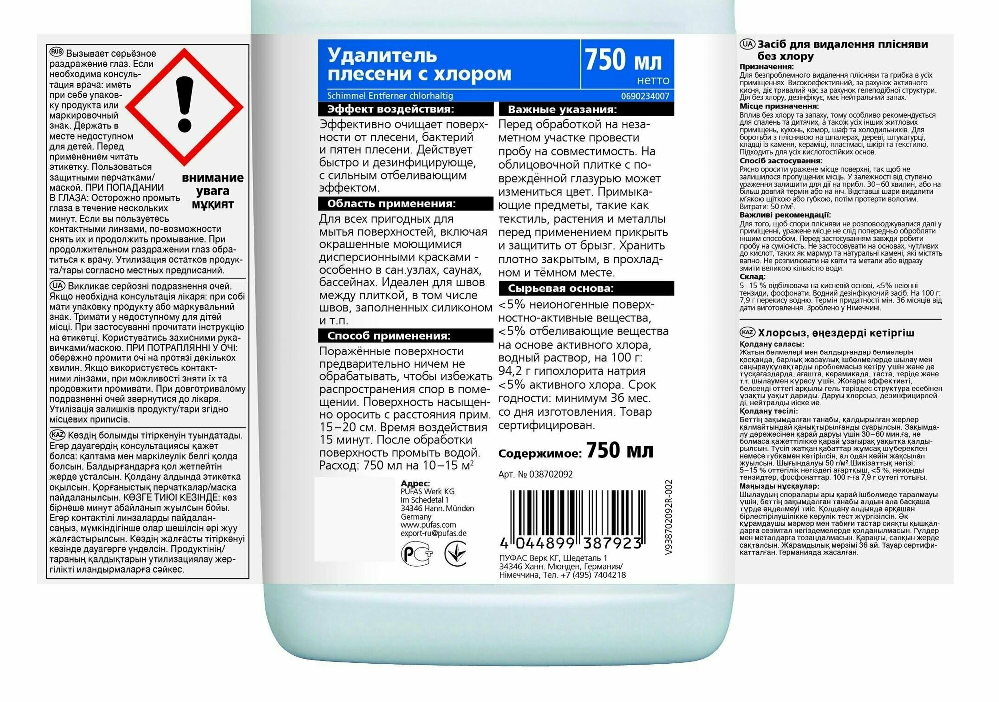 Pufas Удалитель плесени с хлором 750 ml Glutoclean