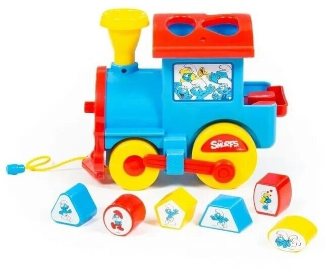 Логический паровозик Полесье Смурфики с 6 кубиками №1 64356