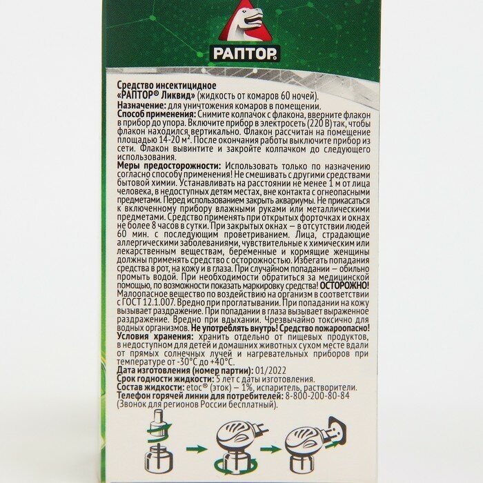 Жидкость от комаров 60 ночей раптор 12639 G9591