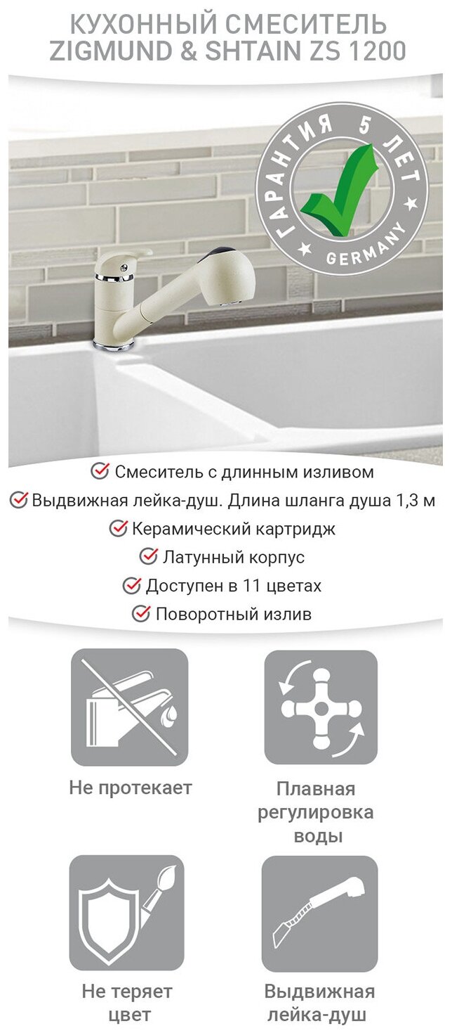 Смеситель для кухни Zigmund & Shtain ZS 1200 индийская ваниль