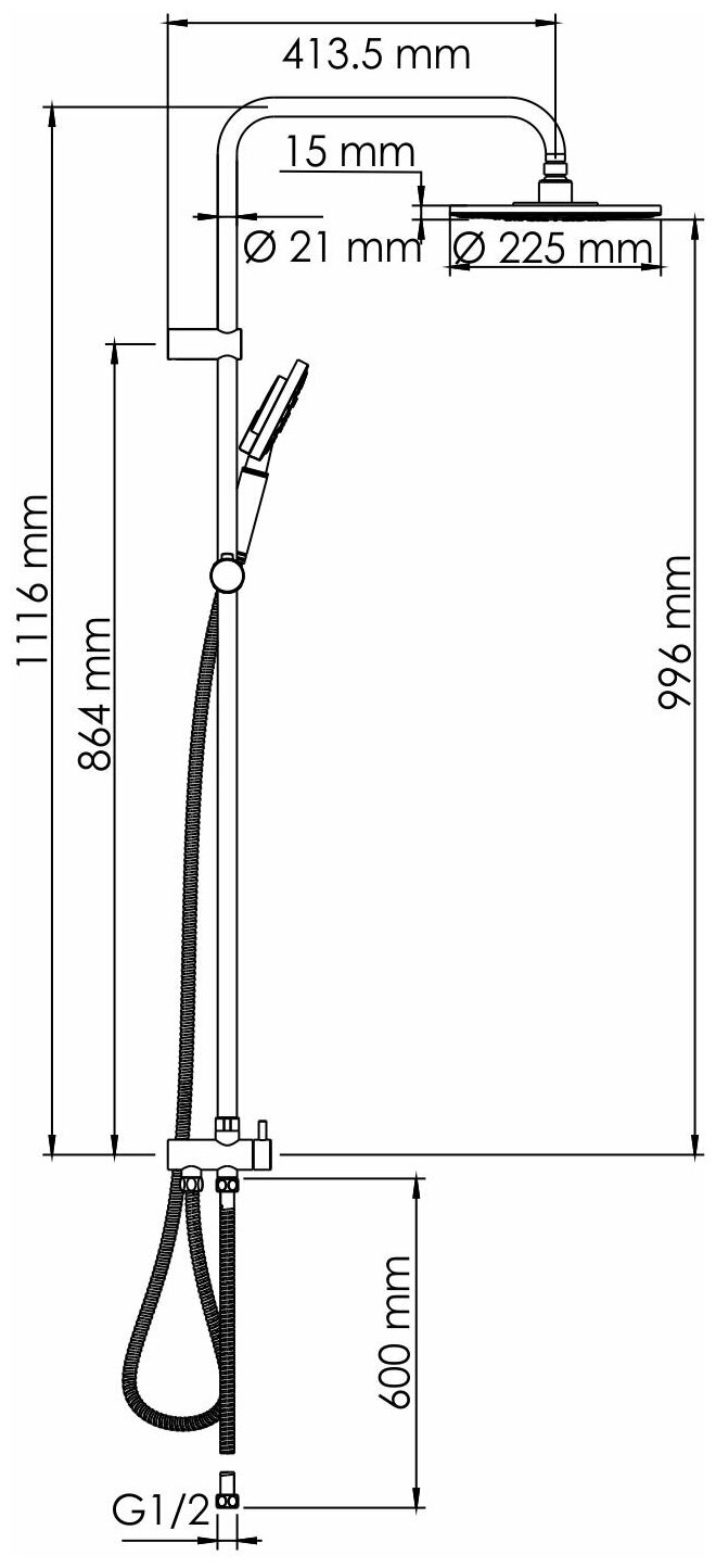 | Дополнительная информация | режимы потока воды от производителя: ливневая струя; покрытие: хром/никель; высота стойки для душа: 1116 мм; диаметр верхнего душа: 225 мм |
