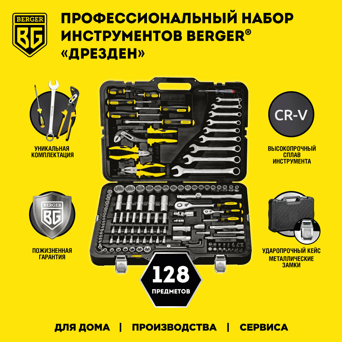 Набор инструментов дрезден, 128 предметов, Berger BG128-1214