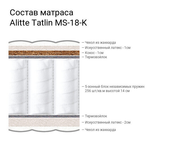 Матрас Alitte Tatlin MS-18-K, Размер 185х200 см