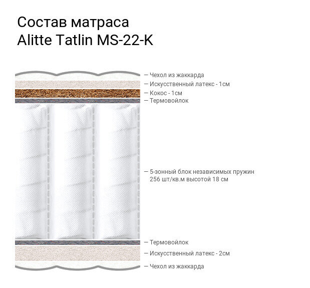 Матрас Alitte Tatlin MS-22-K, Размер 180х200 см