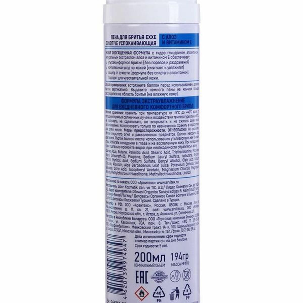 Lider Kozmetik San. ve TIC. A.S./ Лидер Козметик Сан. ве тидж. А.Ш. Пена для бритья EXXE Sensitive, 200 мл