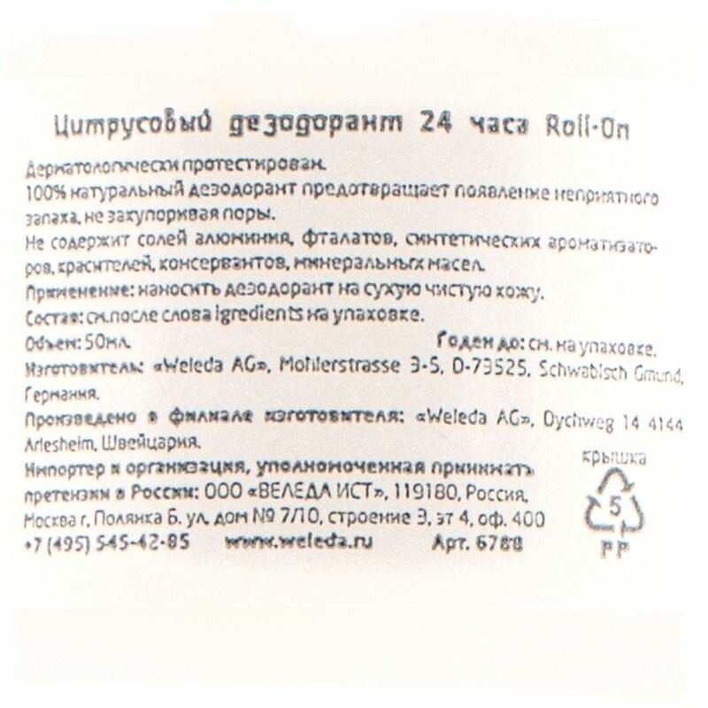 Дезодорант WELEDA Цитрусовый 24 часа Roll-On 50 мл интересное: