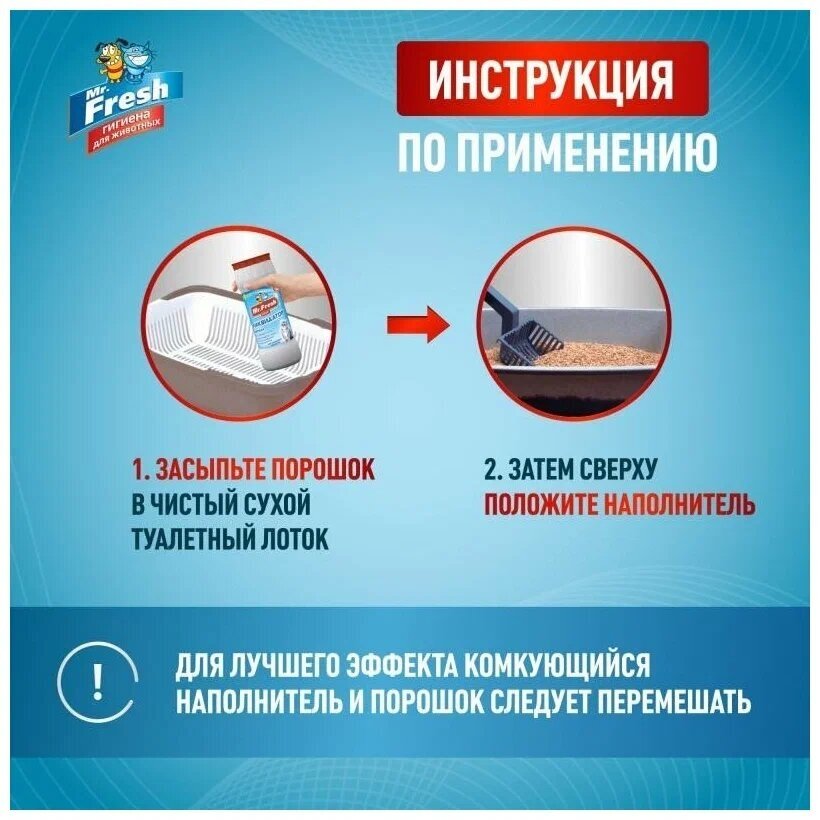 Mr.Fresh 2в1 Ликвидатор запаха для кошачьих туалетов, порошок 500 г