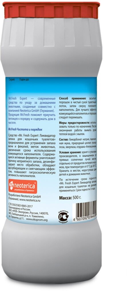 Mr.Fresh Expert 2в1 Ликвидатор запаха для кошачьих туалетов (порошок), 500 г