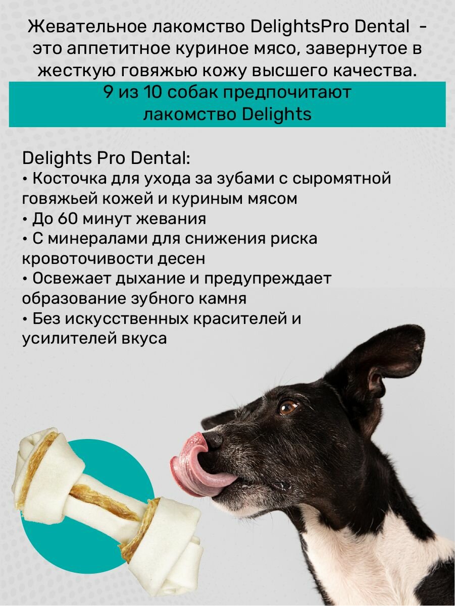 Акция 8в1 Дентал косточка для очистки зубов средних собак М/14см (1шт х 65г), с куриным мясом внутри, семенами петрушки Dеlights Pro Dental Bone срок: 10.23г
