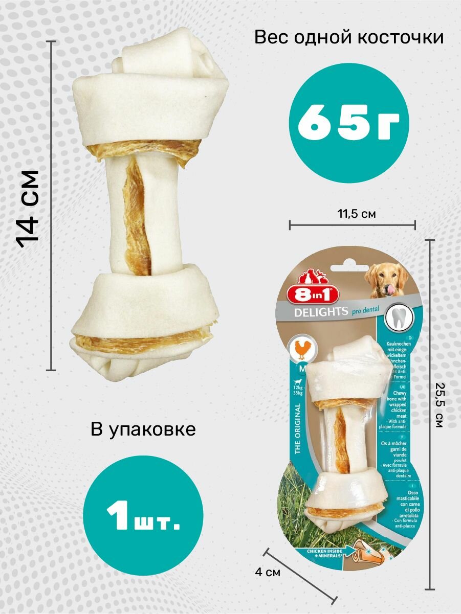 8in1 PRO DENTAL DELIGHTS M косточка с куриным мясом для собак средних и крупных пород, с добавлением минералов, 14.5 см