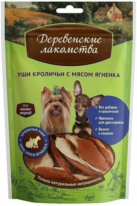 Деревенские лакомства 0,055кг уши кроличьи с мясом ягненка для мини-пород