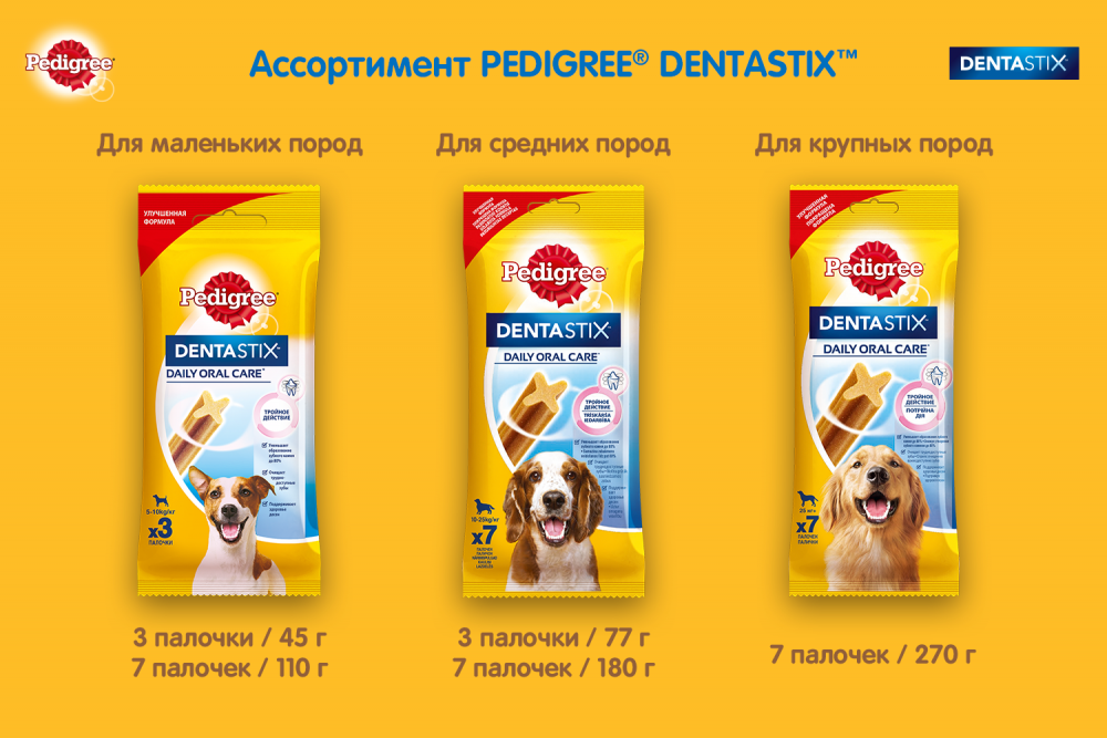 Лакомство для собак PEDIGREE Denta Stix для ухода за зубами для средних и крупных пород, 180гр
