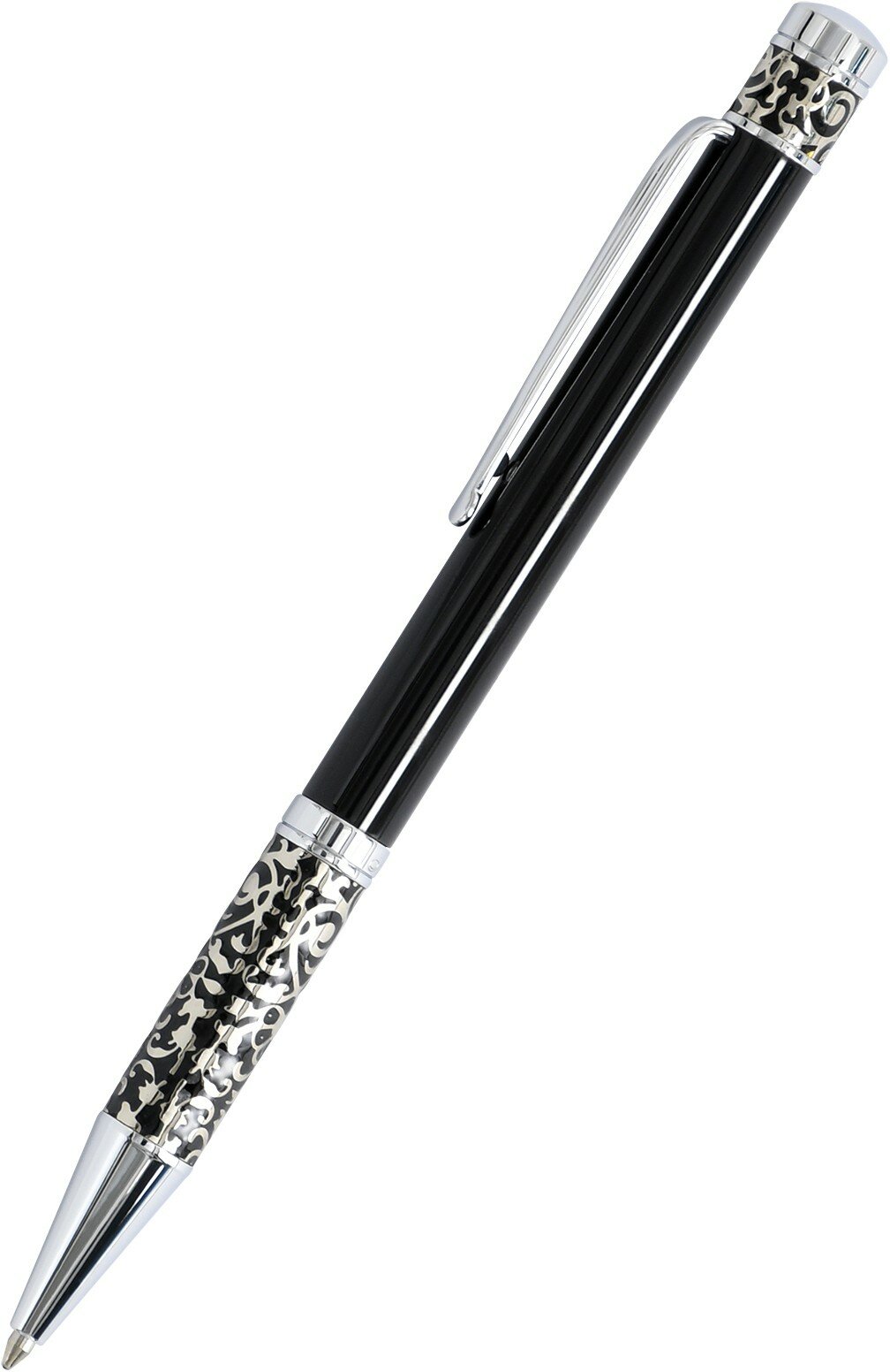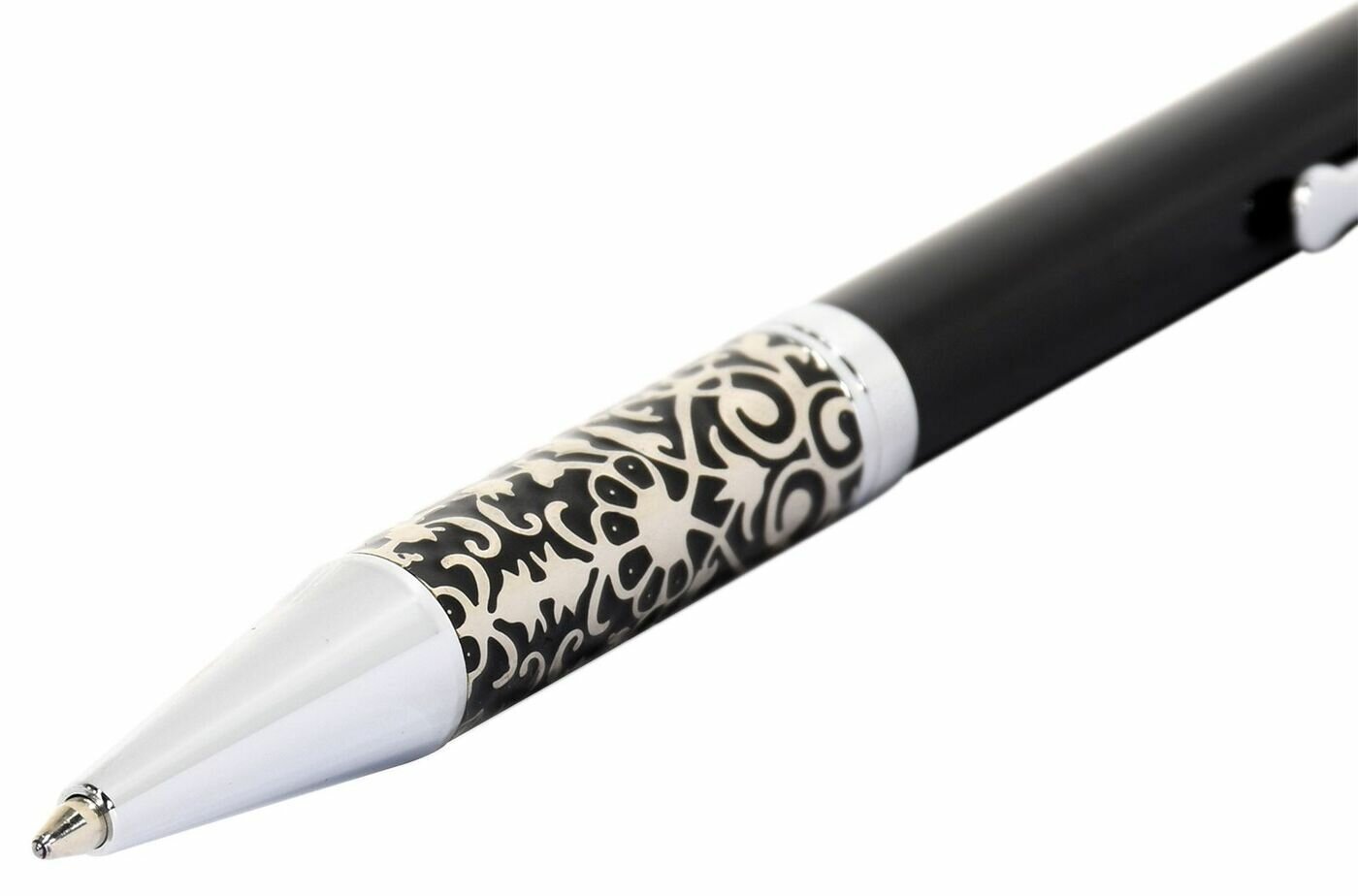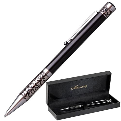Купить Ручка в футляре механическая (поворотная) Marinella 1,0мм металлический черный/серебристый корпус синяя (картонная упаковка) (16018)