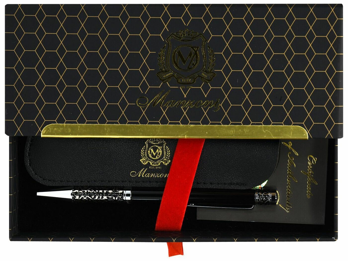 Шариковая ручка Manzoni MARINELLA цвет корпуса: черный футляр кожзам KR405B-01M